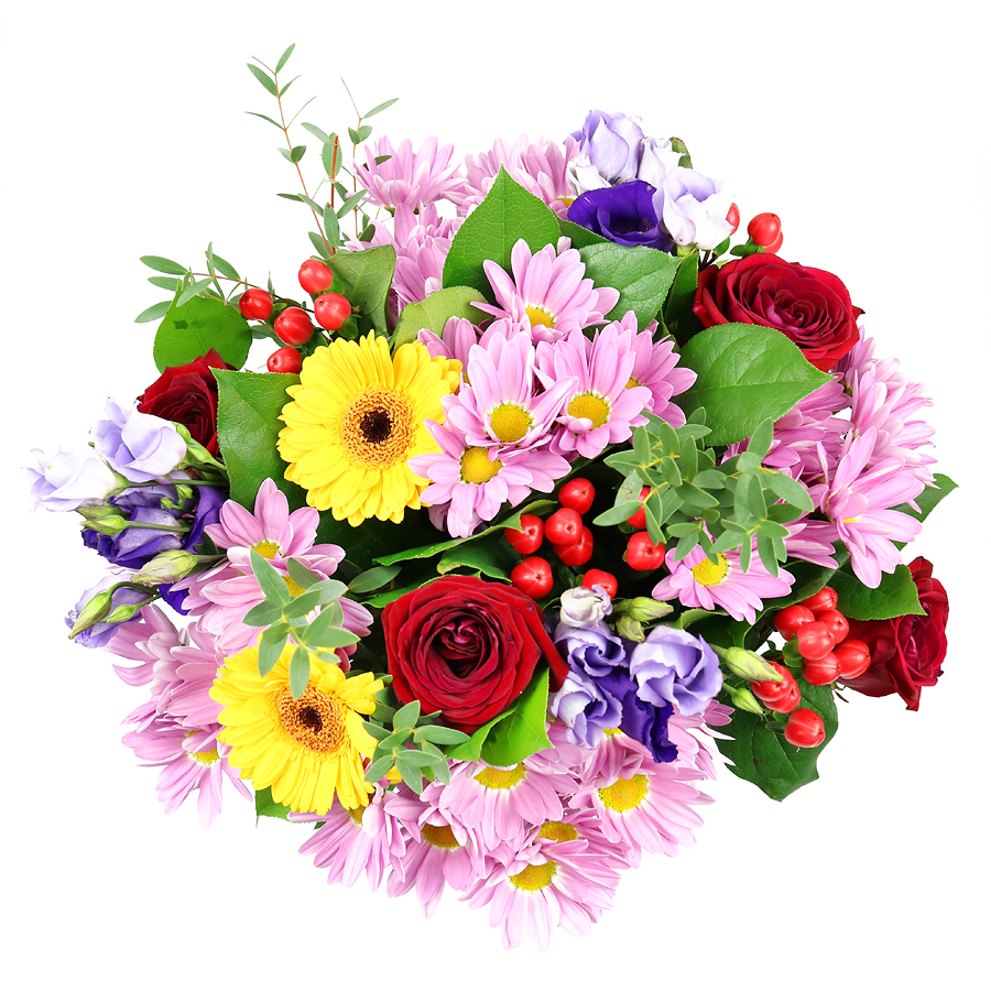 This outstanding combination of roses, chrysanthemums, hypericum, lisianthus and gerberas will fill your home with garden-fresh fragrance. With its captivating and charming colours, this bouquet will bring the freshness of spring right into everyone's heart.