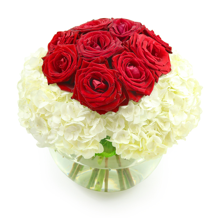 Radiant red roses are the essence of true romance. Our genuine red roses in the perfect combination with white hydrangeas are selected for their size and perfection. It’s a gift of sophistication and luxury meant for one who is truly magnificent!